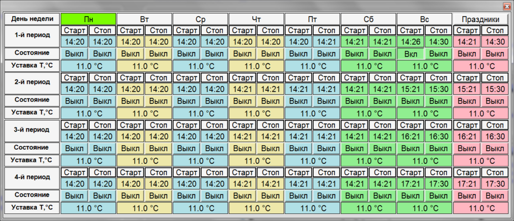 Система керування може налаштувати розклад роботи кожної установки.