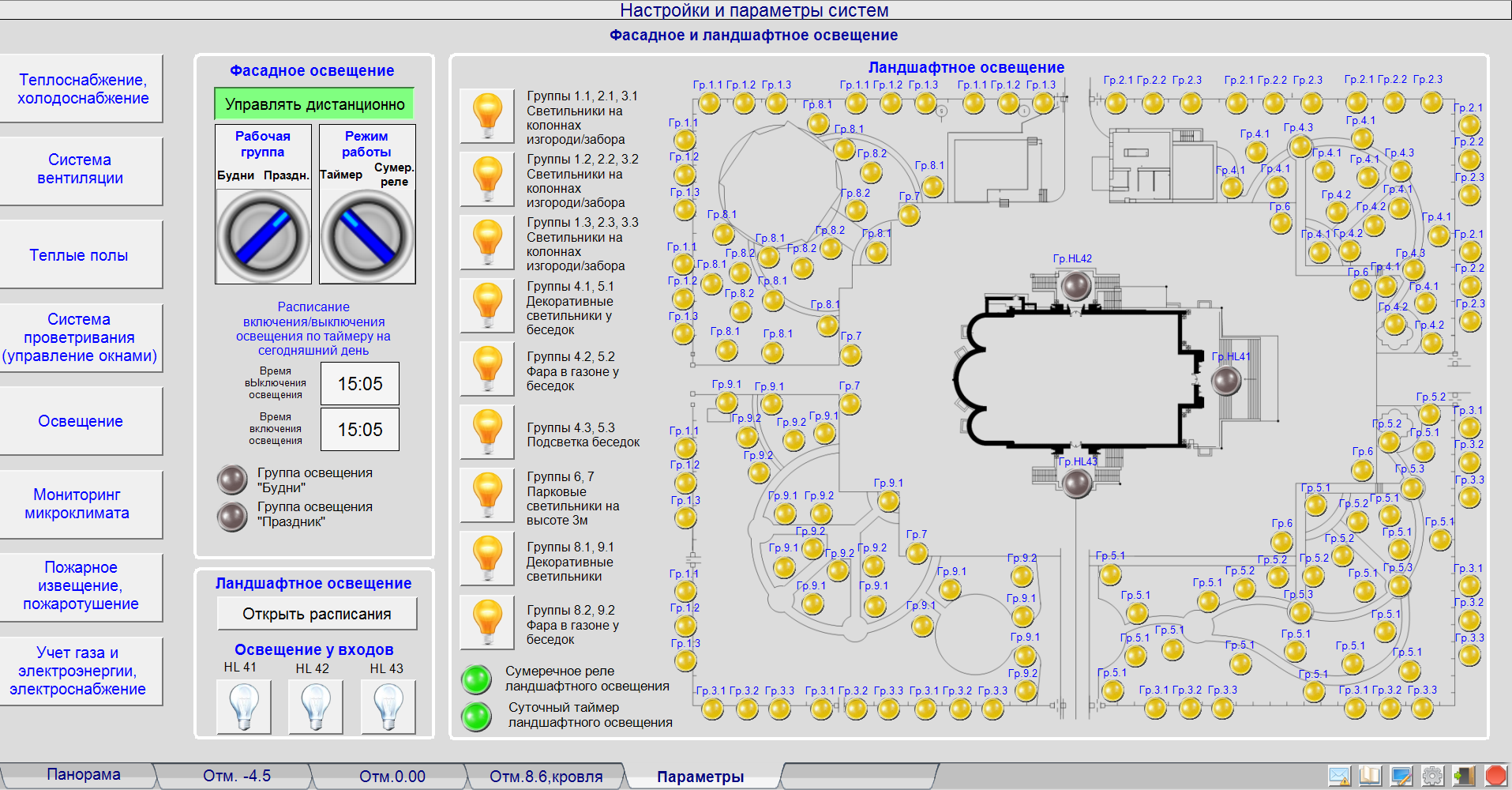 Інтерактивна система управління освітленням дозволяє клацати по екранних кнопках так само, наче бігаючи по комплексу і клацаючи справжніми вимикачами, але з колосальною економією зусиль і часу.